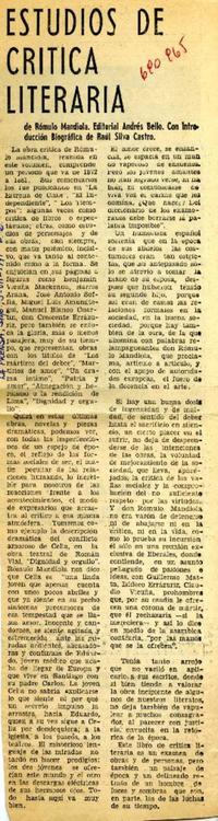 Estudios de crítica literaria. [artículo] La Prensa (Diario : Santiago, Chile)-- jul. 5, 1971, p. 2. .
