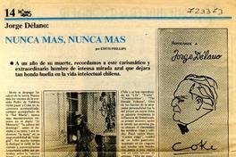 Nunca más, nunca más [artículo] / Edith Phillips. La Segunda (Diario : Santiago, Chile)-- jul. 3, 1981, p. 14 (suplemento) 1 página : ilustraciones en blanco y negro. .