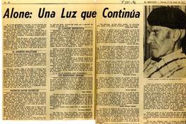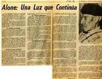 Alone, una luz que continúa [artículo] / José Miguel Ibáñez Langlois. El Mercurio (Diario : Santiago, Chile)-- jun. 1, 1979, p. A12. 1 página : ilustración en blanco y negro. .