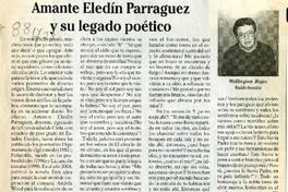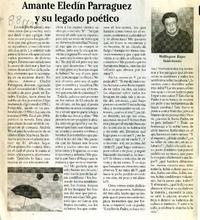 Amante Eledín Parraguez y su legado poético [artículo] / Wellington Rojas Valdebenito. La Tribuna (Diario : Los Angeles, Chile)-- dic. 16, 2005, p. 2. 1 página : ilustración en blanco y negro. .