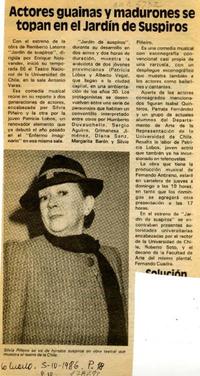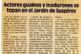 Actores guainas y madurones se topan en el "Jardín de suspiros". [artículo] La Cuarta (Diario : Santiago, Chile)-- abr. 5, 1986, p. 18. 1 página : ilustración en blanco y negro. .