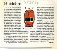 Huidobro tal cual [artículo] / Lázaro Diario siete (Diario : Santiago, Chile)-- ene. 10, 2006, p. 15. 1 página : ilustraciones en color ; 12 cm. .