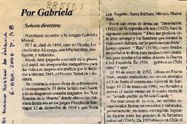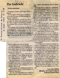 Por Gabriela [artículo] / Luis Soto Padilla. El Austral (Valdivia, Chile) abr. 6, 2006., p. A8. 1 página : 19 cm. .