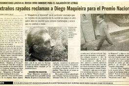 Extraños rayados reclaman a Diego Maquiera para Premio Nacional [artículo] La Nación (Santiago, Chile)-- abr. 15, 2006, p. 17 1 página : ilustraciones en blanco y negro ; 17 cm. .