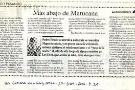 Más abajo de Matucana [artículo] / Luis Sánchez Latorre. 1 página : ilustraciones en color ; 13 cm. .