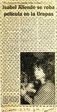 Isabel Allende se roba película en las uropas. [artículo] La Cuarta (Diario : Santiago, Chile)-- mar. 6, 1993, p. 20. .