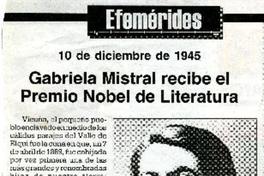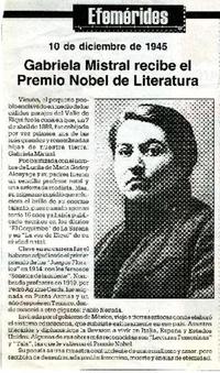 10 de diciembre de 1945 : Gabriela Mistral recibe Premio Nobel de Literatura [artículo] El Observador (Quillota, Chile) dic. 8, 2005, p. 8. .