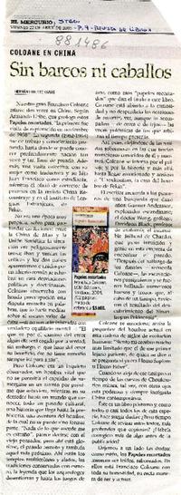 Sin barcos ni caballos [artículo] / Hernán Poblete Varas. El Mercurio (Diario : Santiago, Chile)-- abr. 22, 2005, p. 9 (suplemento "Revista de libros") .