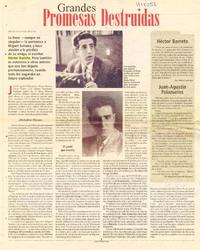 Grandes promesas destruidas [artículo] Por Gonzalo León Pastene El Mercurio (Diario : Santiago, Chile) Febrero 19, 2000, página 8 (suplemento) 1 página : ilustración en blanco y negro ; 33 cm. .