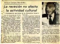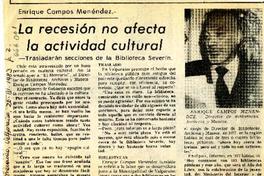 La recesión no afecta la actividad cultural [entrevista] : [artículo] El Mercurio (Diario : Santiago, Chile)-- mar. 26, 1983, p. 2. 1 página : ilustración en blanco y negro. .