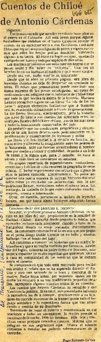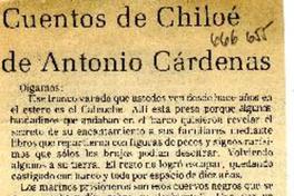 Cuentos de Chiloé de Antonio Cárdenas [artículo] / Hugo Rolando Cortés. El Mercurio de Valparaíso (Diario : Chile)-- oct. 19, 1976, p. C. .