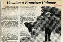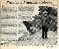 Premian a Francisco Coloane. [artículo] El Mercurio (Diaro : Antofagasta, Chile)-- feb. 4, 1998, p. 30 El Mercurio (Diario : Calama, Chile)-- feb. 4, 1998, p. 30. .