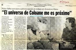"El universo de Coloane me es próximo" [artículo] / Gonzalo Núñez V. La Tercera (Diario : Santiago, Chile)-- mayo 5, 1999, p. 40. 1 página : ilustración en blanco y negro. .
