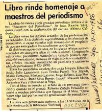 Libro rinde homenaje a maestros del periodismo [artículo] / Las Últimas Noticias (Diario : Santiago, Chile)-- nov. 11, 1986, p. 61. 1 página : ilustración en blanco y negro. .