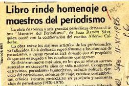 Libro rinde homenaje a maestros del periodismo [artículo]