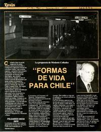 "Formas de vida para Chile" [artículo] / Luis Vargas Saavedra. Proyección (Revista : Santiago, Chile)-- no. 12 (diciembre, 1988), p. 18-21. 4 páginas : ilustraciones en blanco y negro. .