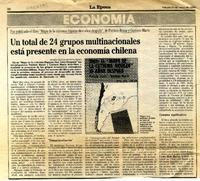 Un total de 24 grupos multinacionales está presente en la economía chilena [artículo] / María Olivia Monckeberg. La Epoca (Diario : Santiago, Chile)-- ene. 21, 1989, p. 20-21. 2 páginas : ilustraciones en blanco y negro. .