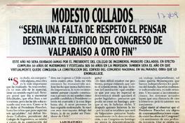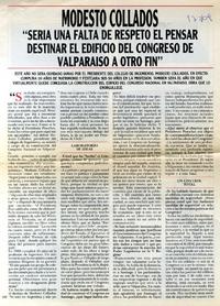 Modesto Collados : sería una falta de respeto el pensar destinar el edificio del Congreso de Valparaíso a otro fin : [entrevista] [artículo] : Carmen Ibáñez.