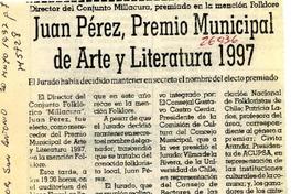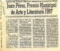 Juan Pérez, Premio Municipal de Arte y Literatura 1997. [artículo]