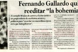 Fernando Gallardo quiere reeditar "la bohemia" [artículo] La Segunda (Diario : Santiago, Chile)-- ago. 11, 2003, p. 41. .