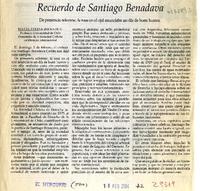 Recuerdo de Santiago Benadava [artículo] / María Teresa Infante C. El Mercurio (Diario : Santiago, Chile)-- feb. 19, 2004, p. A2. .