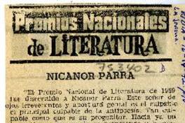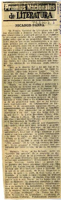 Nicanor Parra [artículo]. El Día (Diario : La Serena, Chile)-- Abril 16, 1972, página 10. 1 página. .