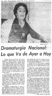 Dramaturgia nacional: lo que va de ayer a hoy [artículo] / Sergio Ramón Fuentealba. El Sur (Diario : Concepción, Chile)-- nov. 23, 1975, p. 9. .