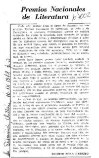 Premios Nacionales de Literatura [artículo] Agustín Billa Garrido.