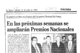En las próximas semanas se ampliarán Premios Nacionales [artículo].