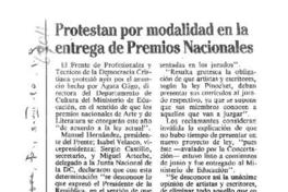 Protestan por modalidad en la entrega de Premios Nacionales. [artículo]