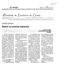 Sobre un Premio Nacional [artículo] / Jorge Arturo Flores. El Centro (Diario : Curico, Chile)-- mar. 18, 1995, p. 2 .