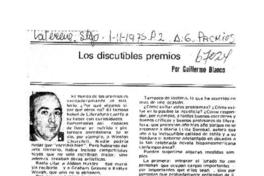 Los discutibles premios [artículo] / Guillermo Blanco. La Tercera (Diario : Santiago, Chile)-- nov. 1, 1975, p. 2. .