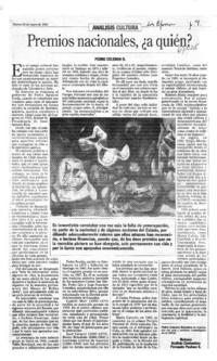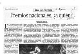 Premios Nacionales ¿A quién? [artículo] Pedro Celedón B.