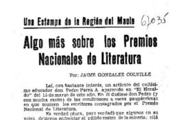 Algo más sobre los Premios Nacionales de Literatura [artículo] Por Jaime González Colville.