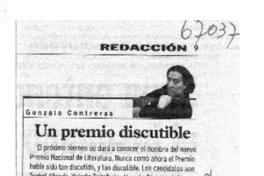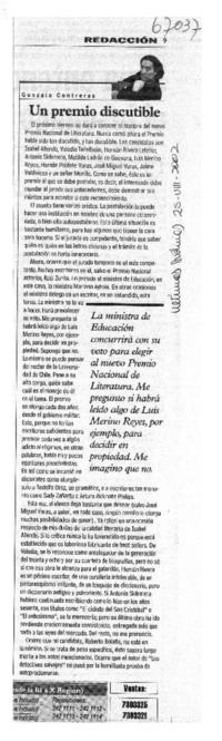 Un premio discutible [artículo] / Gonzalo Contreras. Las Últimas Noticias (Diario : Santiago, Chile)-- ago. 25, 2002, p. 9. .