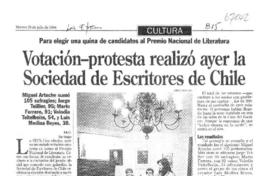 Votación-protesta realizó ayer la Sociedad de Escritores de Chile [artículo] / M.G. La Época (Diario : Santiago, Chile)-- jul. 26, 1994, p. B15. 1 página : ilustración en blanco y negro. .