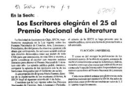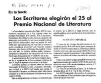 Los Escritores elegirán el 25 al premio nacional de literatura. [artículo] El Siglo (Diario : Santiago, Chile)-- jul. 14, 1994, p. 9. 1 página : .