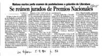 Se reúnen jurados de Premios Nacionales. [artículo] La Época (Diario : Santiago, Chile)-- sept. 5, 1994, p. B7. .