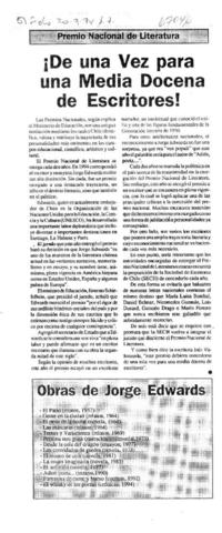 ¡De una vez para una media docena de escritores! [artículo] El Siglo (Diario : Santiago, Chile)-- sept. 20, 1994, p. 7. .