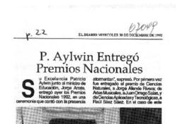 P. Aylwin entregó Premios Nacionales. [artículo]