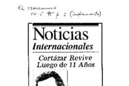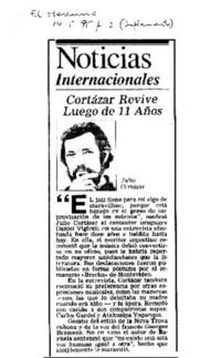 Cortázar revive luego de 11 años. [artículo] El Mercurio (Santiago, Chile)-- mayo 14, 1995, p. 2 (suplemento) retr. .