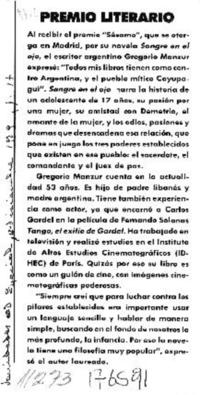 Premio literario. [artículo] Vanidades (Revista : Santiago, Chile)-- Ed. Especial (diciembre 12, 1989), p. 17. .