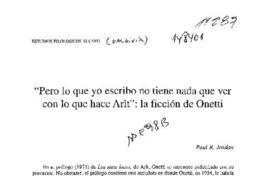 "Pero lo que yo escribo no tiene nada que ver con lo que hace Arlt", la ficción de Onetti [artículo] Paul R. Jordan.