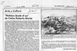 "Noticias desde el sur", de Carlos Roberto Morán [artículo] / León César Santoro Funes. El Mercurio de Valparaíso (Diario : Chile)-- nov. 5, 1988, página 2. .