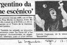 "Teatrante" argentino da su "cambalache escénico" [artículo]. La Segunda (Diario : Santiago, Chile)-- dic. 17, 1987, página 26. 1 página : ilustración en blanco y negro. .