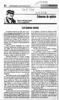 Los buenos versos [artículo] / Marino Muñoz Lagos. La Prensa Austral. -- jul. 8, 1993, p. 2. retr. .