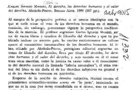 Carlos Ignacio Massini, "El derecho, los derechos humanos y el valor del derecho" [artículo] / José Miguel Lecaros. Revista de Derecho Público (Revista : Santiago, Chile)-- no. 41-42 (enero diciembre, 1987), páginas 307-309 3 páginas. .
