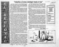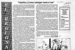 "Caballos y jinetes cabalgan hasta el mar" [artículo] / Luis E. Aguilera. El Regional (Diario : Coquimbo, Chile)-- jul. 22, 1990, página 3. 1 página : ilustración en blanco y negro. .