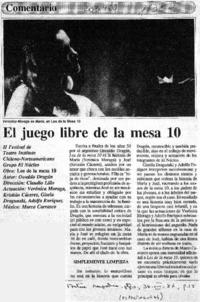 El Juego libre de la mesa 10 [artículo]. Fortín Mapocho (Diario : Santiago, Chile)-- ago. 30, 1987, página 15. 1 página : ilustración en blanco y negro. .