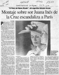 Montaje sobre sor Juana Inés de la Cruz escandaliza a París [artículo]. La Epoca (Diario : Santiago, Chile)-- mayo 9, 1993, página 30. 1 página : ilustracion en blanco y negro. .